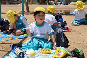 ぽかぽか♪お外でお弁当美味しいよ!!(ちゅうりっぷ・すずらんホーム)