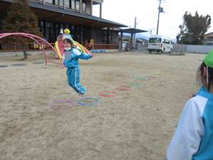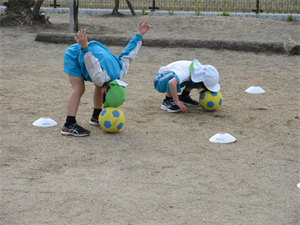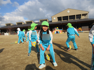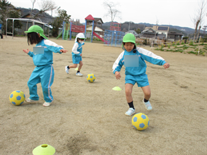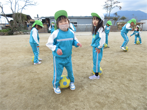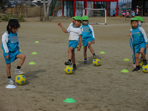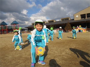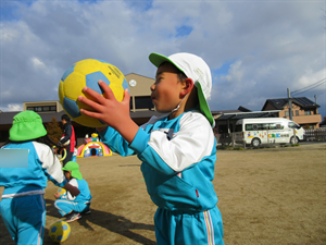 試合でも友達同士で声をかけ合う姿が多くなりました。得点を決めて互いに喜び合うだけでなく、プレー中も「ゴール守っとって!次私が行ってくる!」「うん、分かった、お願い」と声をかけあって役割を交代したり、「ゴールキーパー二人にしよう」と相談したり・・・「惜しかったね」「今の上手やったね!」と友達の良いところも伝え合うようになりました。転んだお友達がいても「大丈夫?休んどく?いける?」と心配をしたり・・・