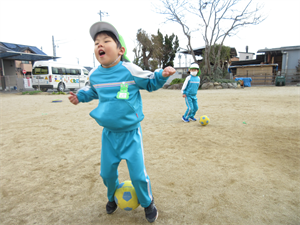 サッカーが楽しい!大好き!「お外でサッカーしよう!」「サッカーを習いたい!」と体を動かすこと、ボールに触れること、友達と一緒に遊ぶこと・・・年中さんの頃からたくさんの楽しさを教えてくださいました!聡コーチありがとうございました!(^^)!