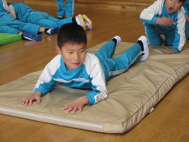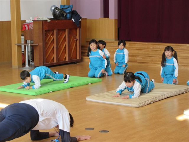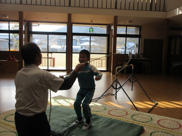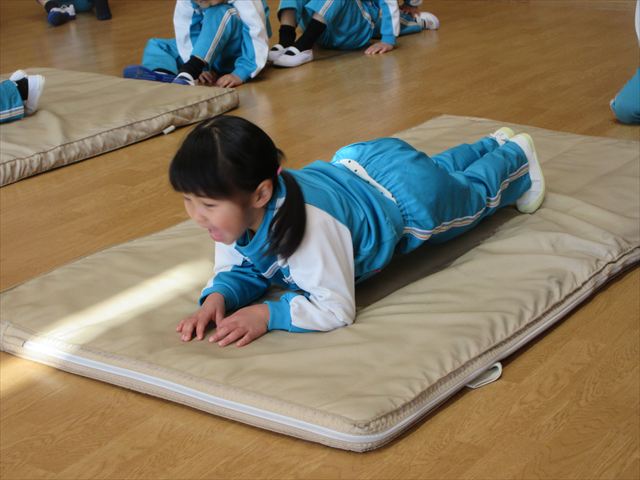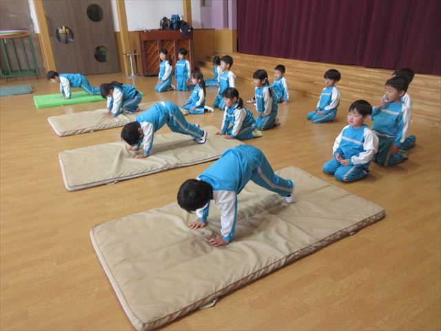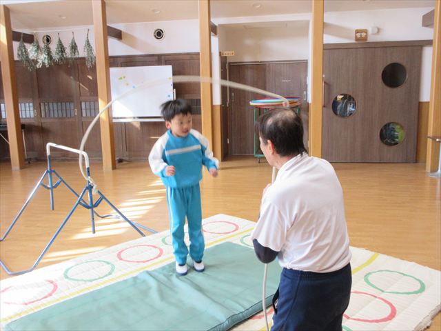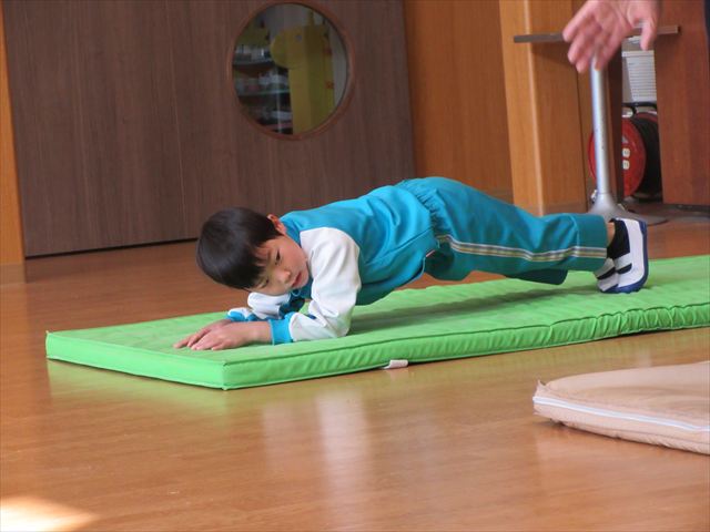 2026/2/16 バランス名人再び!?(たんぽぽホーム) 体操レッスンで体幹を使う活動をしました。 まずはマットの上で、腕立て伏せのようなポーズに・・・おしりを上げ過ぎず、腕と足で自分の体を支えるのが思っているよりも難しく「うう。。。(+o+)」と、声が漏れることもありましたが頑張っていましたよ。 片手、片足を挙げてみたり、太鼓の音に合わせて手足をつけたり、立ったりもしました。 最後には大縄をして、田中先生の顔を見ながらタイミングを合わせて跳びました(^^♪ みんなとても楽しそうでした✨ たんぽぽホーム 金山