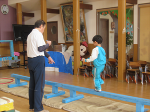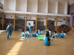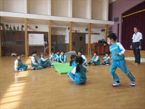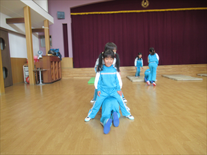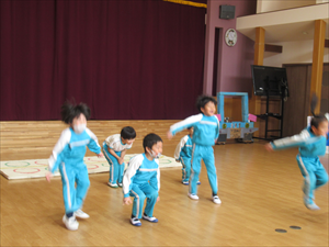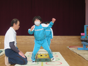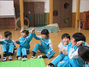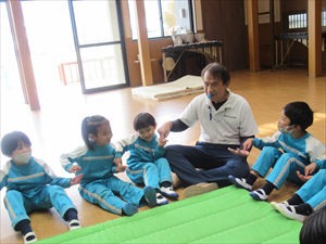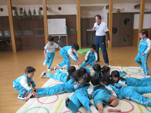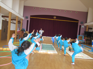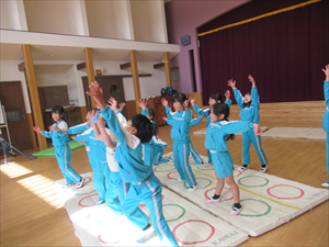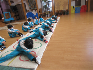 2026/3/7 体操(ひまわりホーム) 幼稚園生活での体操も最後となりました。一人では難しいこともお友達からの応援でパワーをもらい諦めず繰り返し練習したり、お手本やお友達を見る時は「体操座りしよう!」と自分たちで声を掛け合う姿が見られたりしましたよ。どの活動も笑顔があふれ、心から楽しんでいる様子が見られました!(^^)! 田中先生、1年間ありがとうございました。 ひまわりホーム酒井