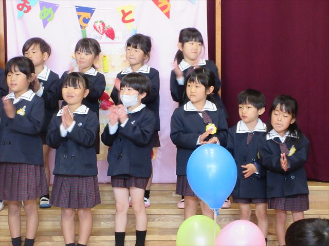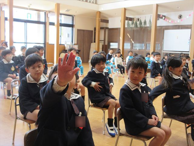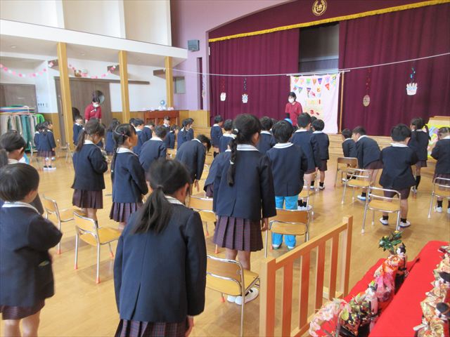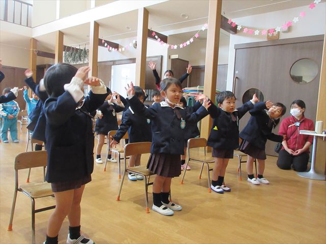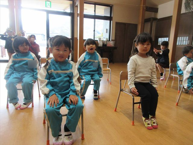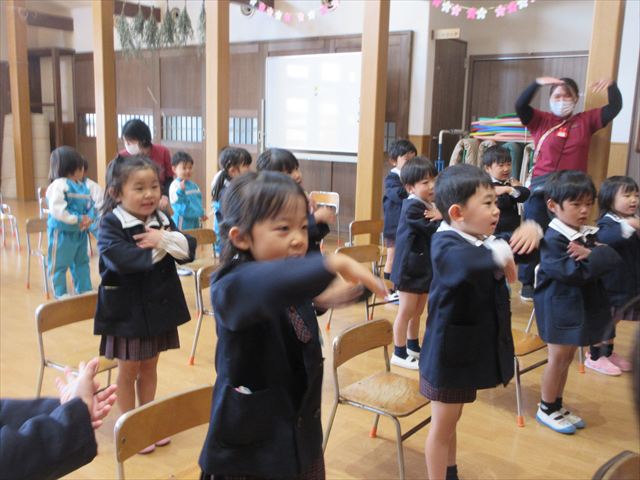 みちえ先生から、先月に続いて3月ももう一つ弥生という呼び方あることを教えていただきました。3月の弥生の、や(弥)は、いよいよ・これから芽が出てきて、よい(生)は生えてくる、命がうまれますよという意味だと教えて下さいました。植物が花を咲かせ、暖かくなるそんな月にうまれた子どもさん心もやさしくあたたかいでしょうね。また、それをお祝いしている子どもさんも優しい気持ちが溢れているようでした。