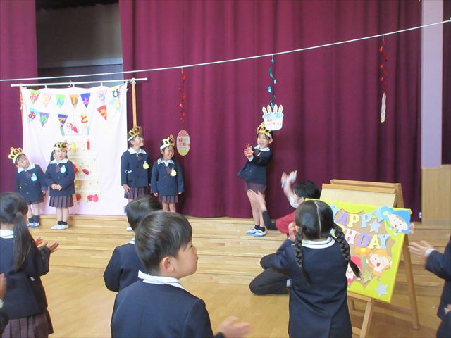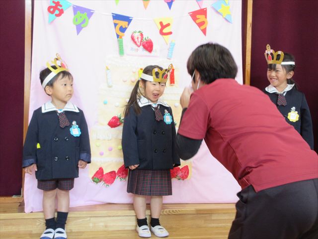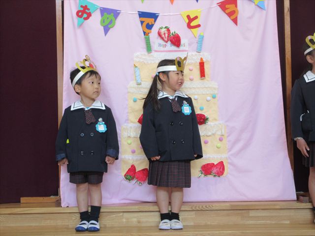 今年度最後のお誕生会がありました。3月のお誕生児さんは、この日を楽しみに待っていたのでわくわくしている様子でしたよ。