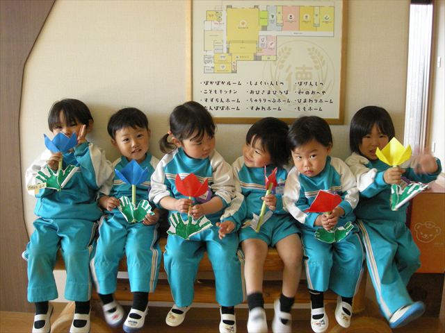 こちらも今日からちゅうりっぷさんホームに進級した、昨日までのすずらんホームさんたちです。