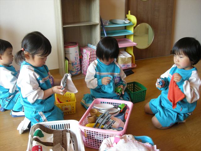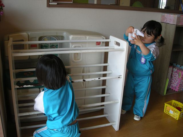 すずらんホームのおへやの掃除もしました。次にももさんが使うからきれいにしましょう!と声をかけると玩具を丁寧に拭き、拭いたものを片付け、それぞれにしたい気持ちがたくさんで、1年間お世話になった玩具やロッカーなどがピカピカになりましたよ。子どもさん達の成長がたくさん感じられて嬉しかったです。