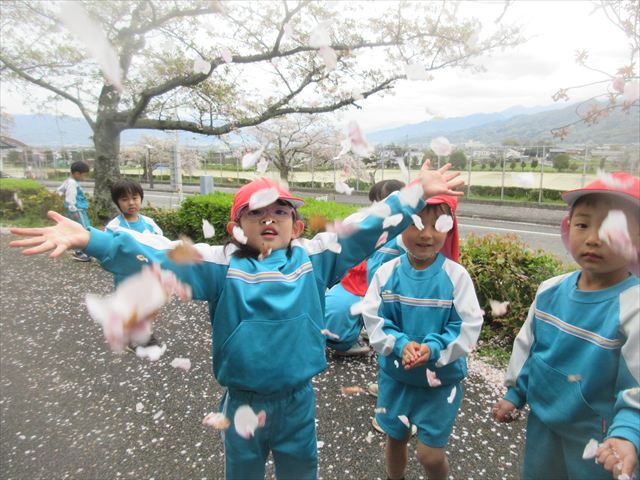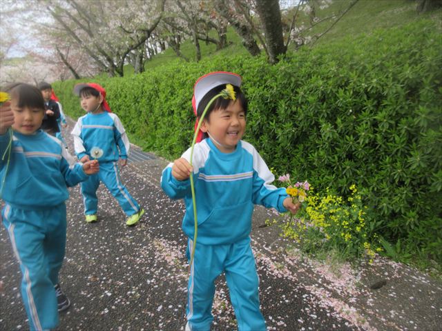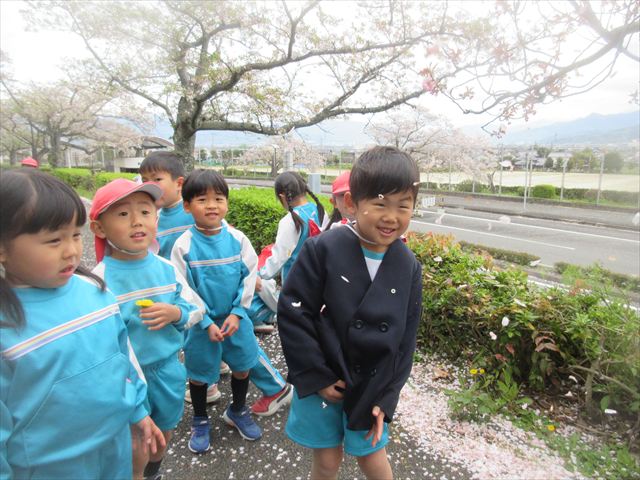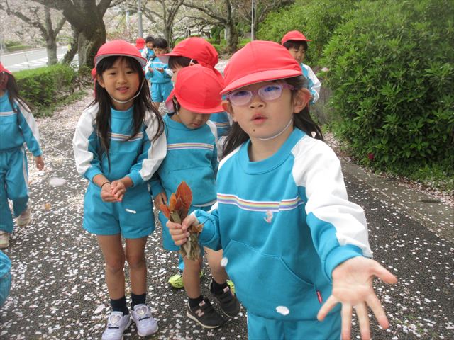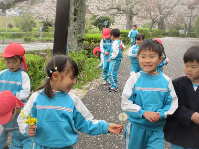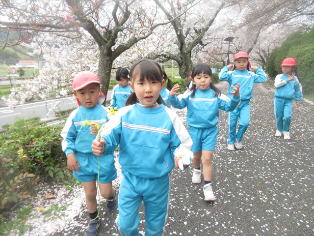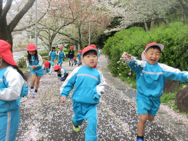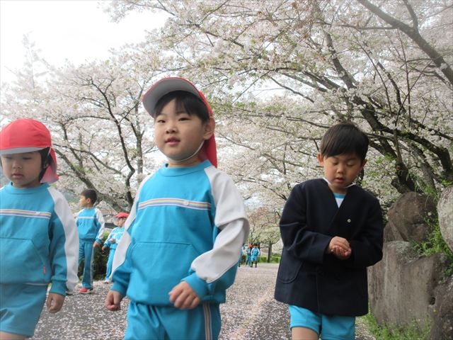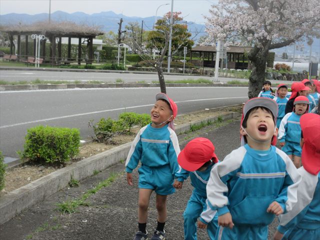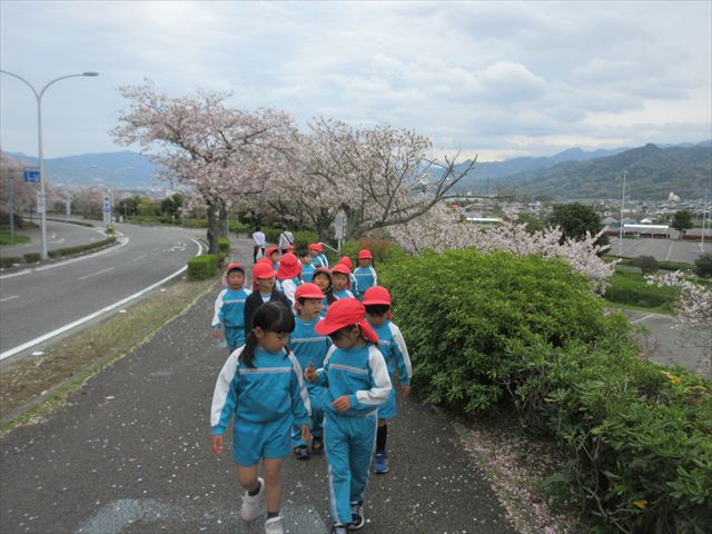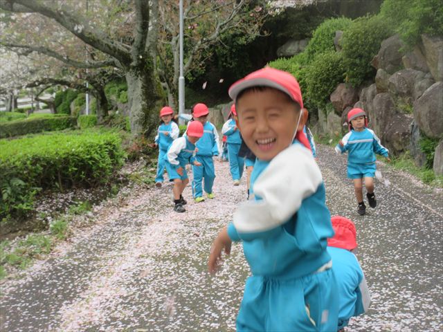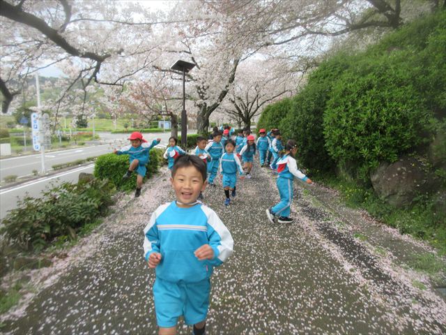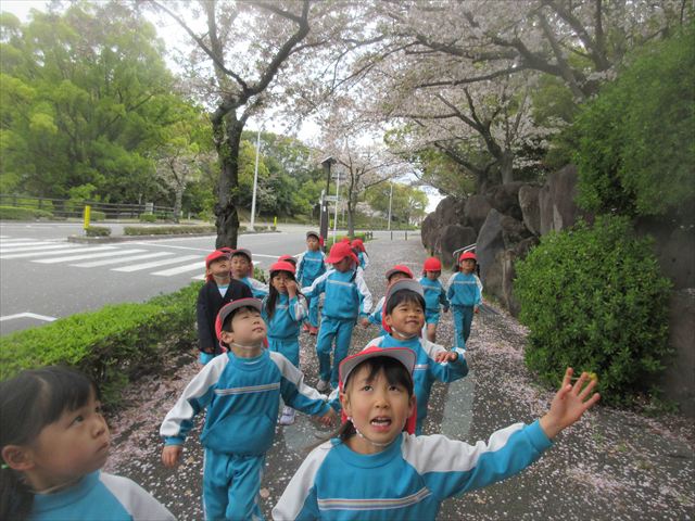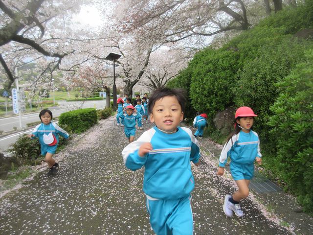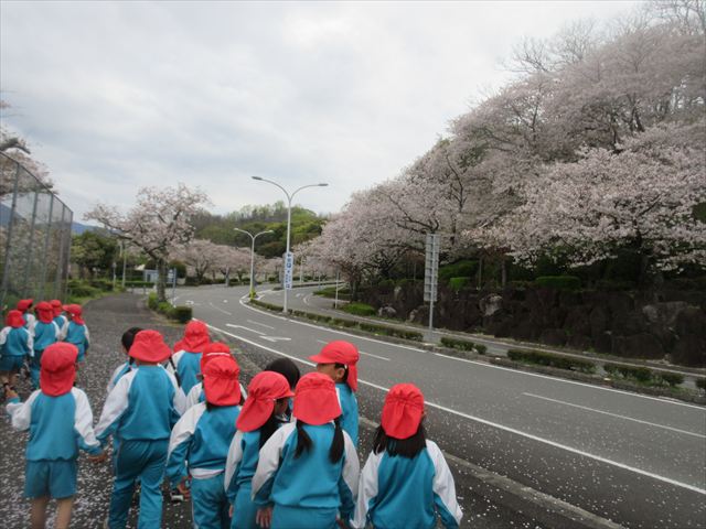 2026/4/13 桜トンネル🌸(ひまわりホーム) みんなで歩いてお花見に行きました!(^^)!桜トンネルに桜のじゅうたん!「きれいだね」と大喜びの子どもさん達でした! 昨年もお花見に行きたかったのですが、昨年の今頃は、「もう歩けない・・・」と総合公園の入り口の公園で引き返しました。今年度はニンジニアスタジアム手前の方まで上り、幼稚園まで戻ってくることができました!一年で体力が少しずつついていることを実感します! ひまわりホーム 鶴原 桜トンネルだぁ・・・ 桜がひらひら降ってくるよ! 向こうにも桜がいっぱい! 横断歩道は
