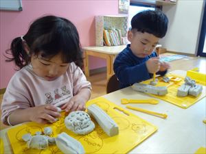 蓋を開ける時の子どもさんたちの目はキラキラ!粘土にクレヨン・・・宝箱を開けるようなワクワク感に包まれました。
